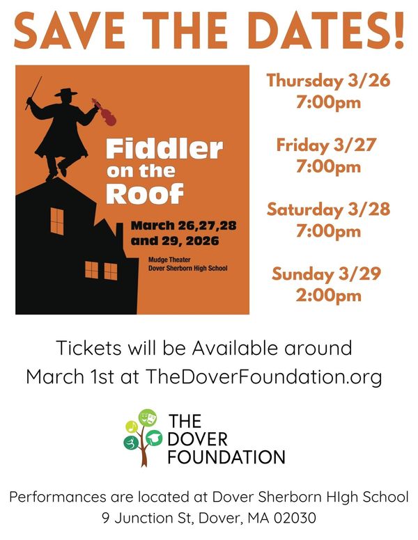 By sponsoring Fiddler on the Roof and supporting The Dover Foundation, your organization directly contributes to scholarships, community enrichment, and the continued celebration of the performing arts in Dover.